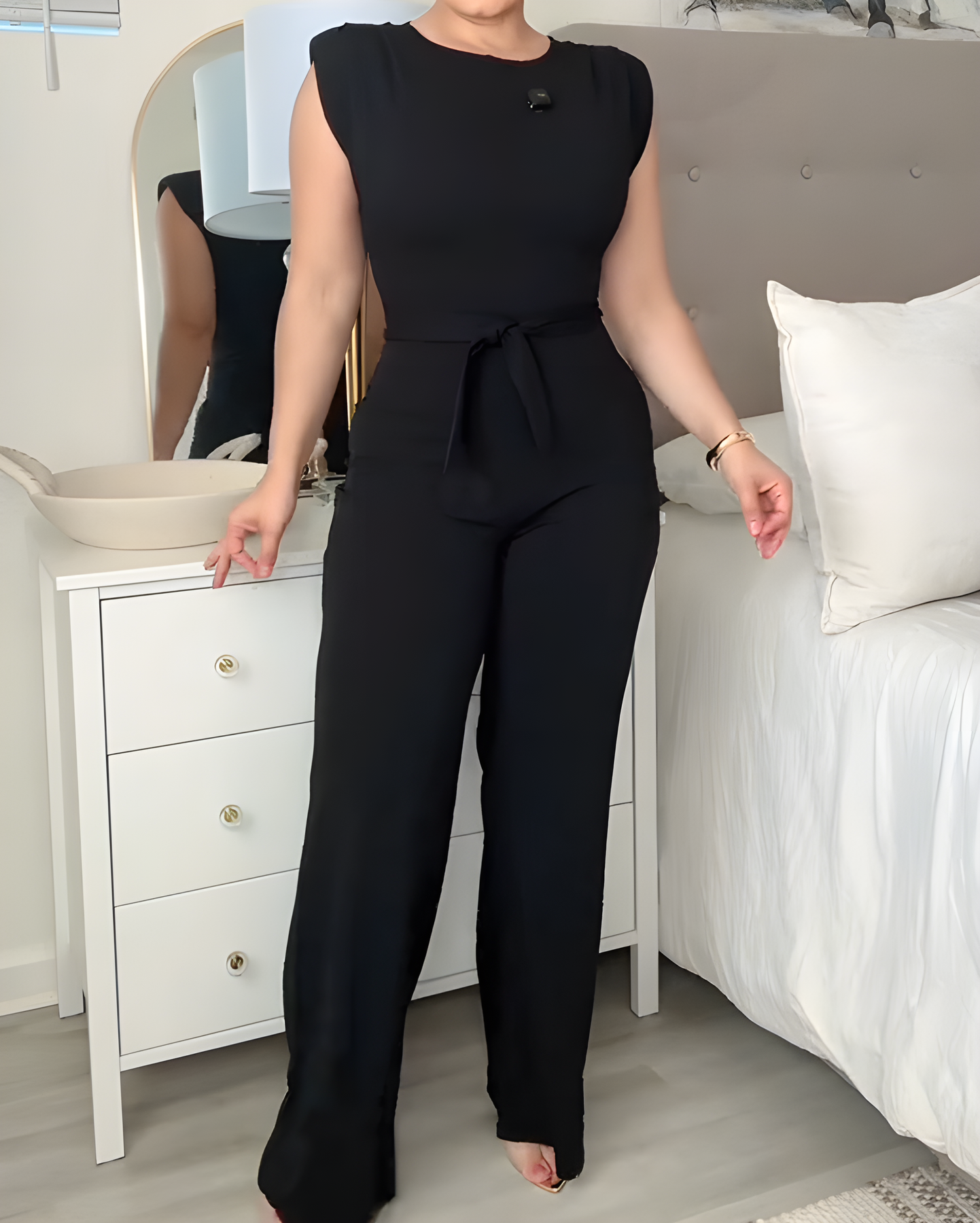 zupełnij swojgarderobę o Bezrękawnikowy Kombinezon Damski Slim Fit z Szerokimi Nogawkaą mi, który łączy w sobie elegancję, wygodę i nowoczesny styl. Doskonały na co dzień, do biura czy na wieczorne wyjścia – zawsze podkreśli Twój wyjątkowy wygląd.
