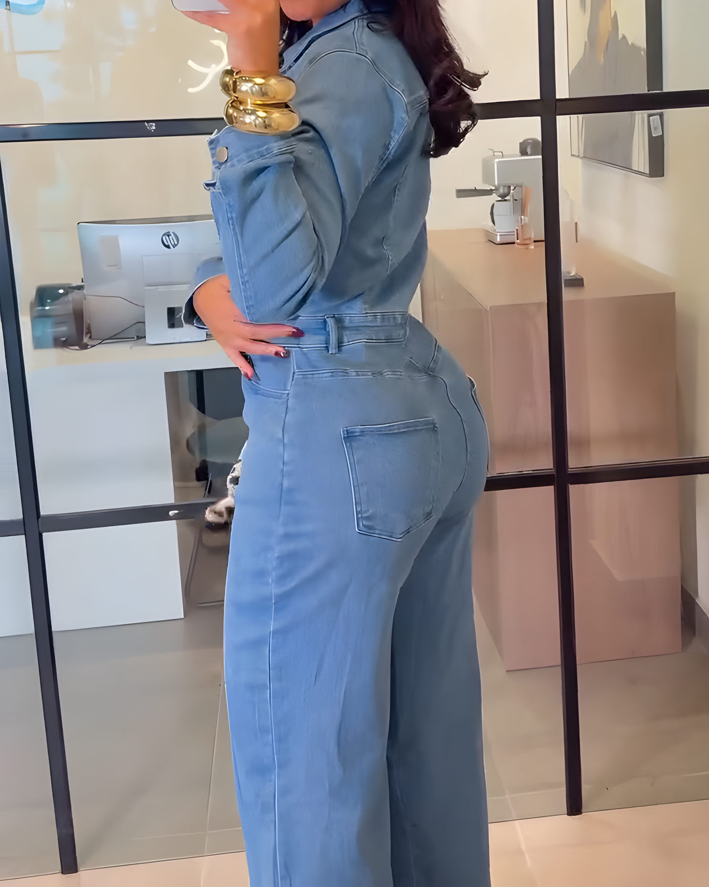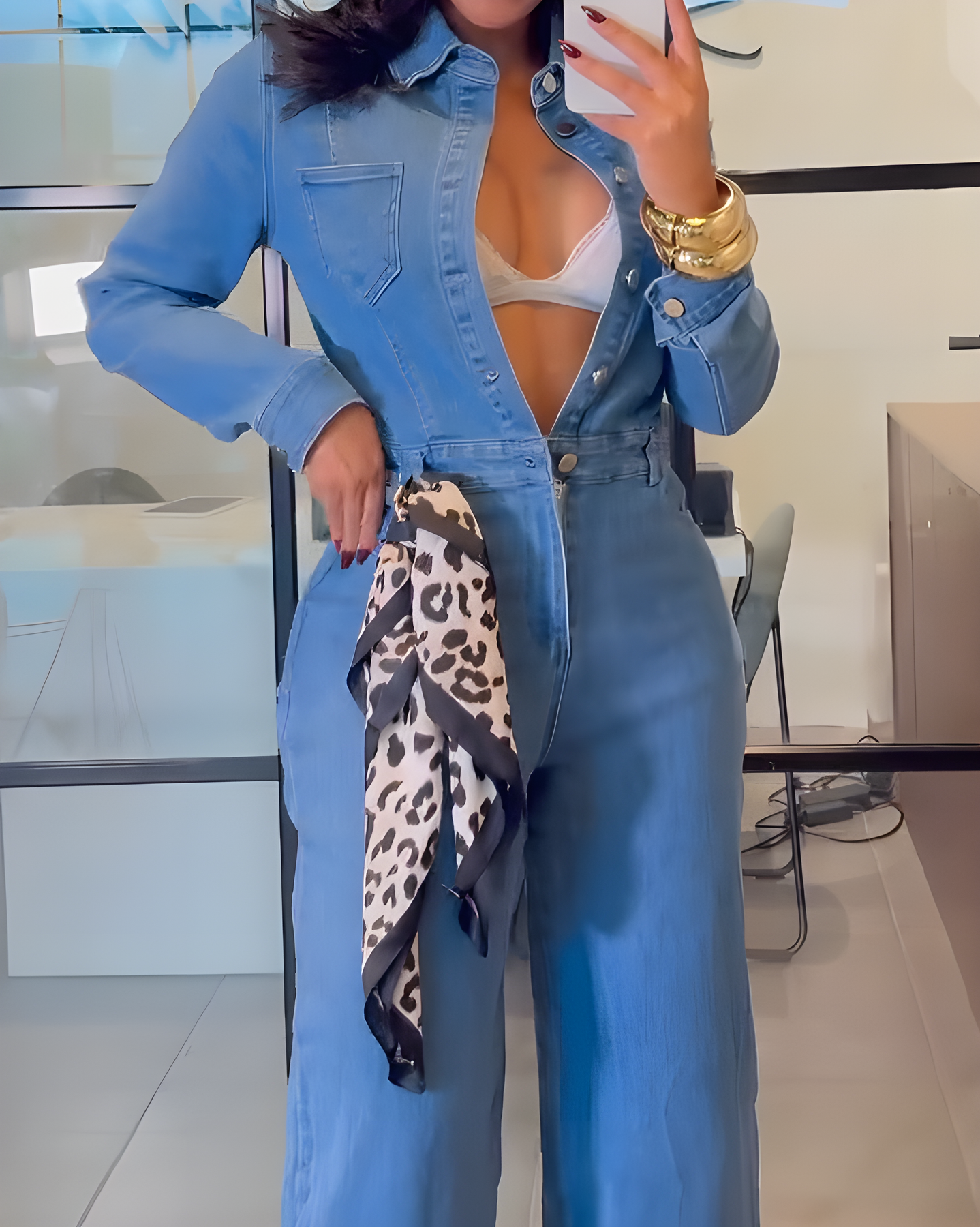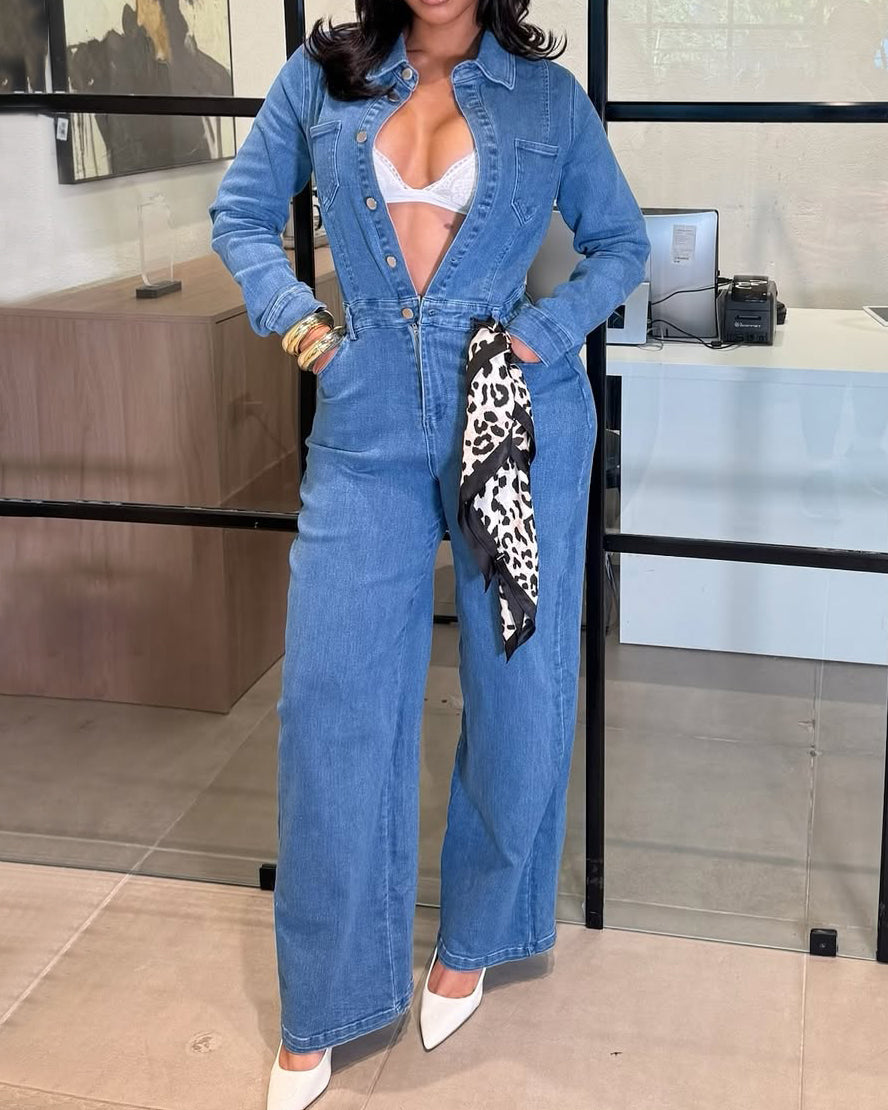 Odmień swoją garderobę dzięki Damskiemu Kombinezonowi Jeansowemu z Długim Rękawem i Szerokimi Nogawkami, stworzonemu dla kobiet, które cenią wygodę, styl i pewność siebie. Wykonany z wysokiej jakości denimu, łączy w sobie nowoczesną modę i codzienną praktyczność. Idealny na luźne wyjścia, kolacje czy weekendowe spotkania – zawsze zagwarantuje szykowny wygląd.