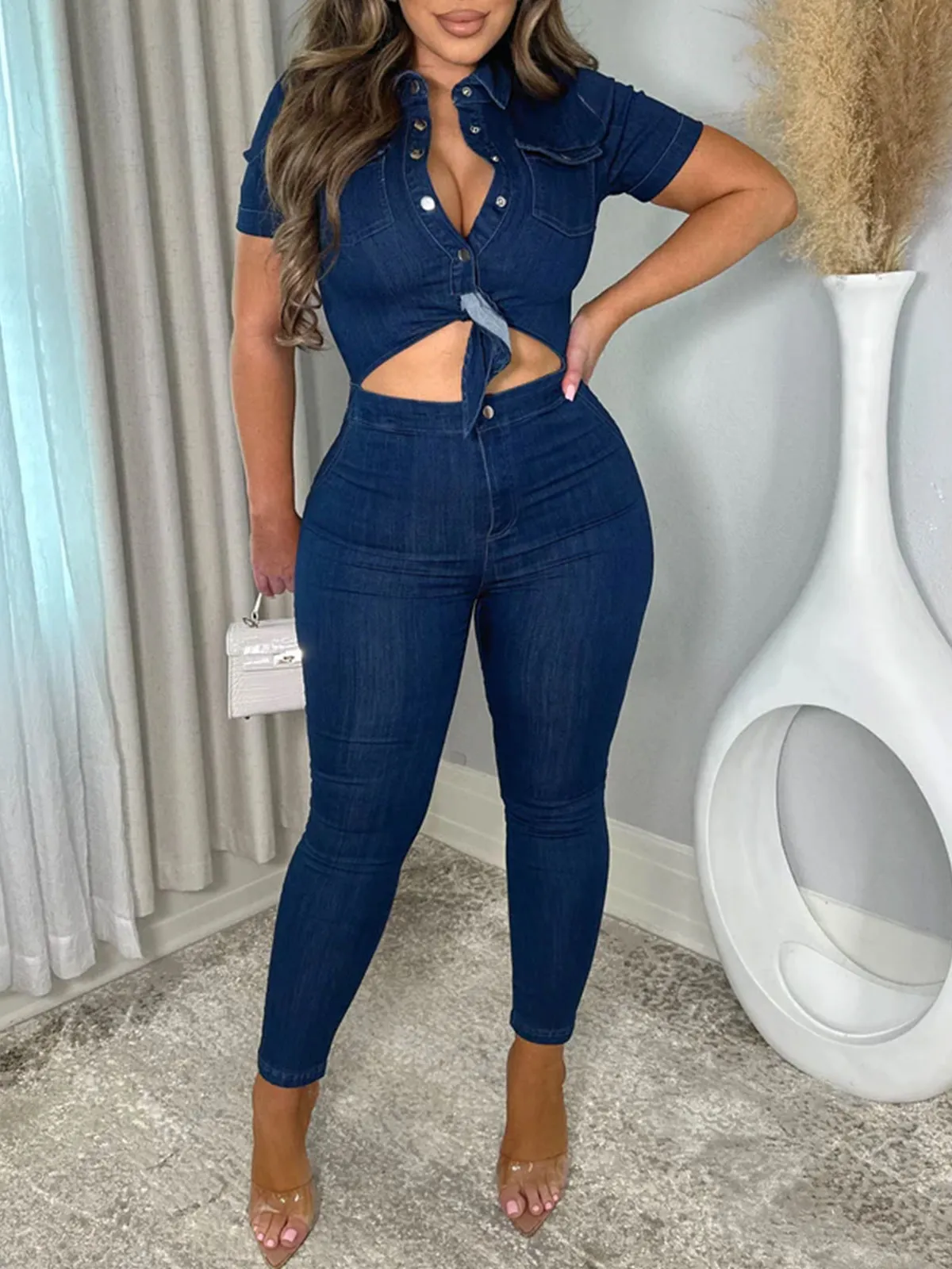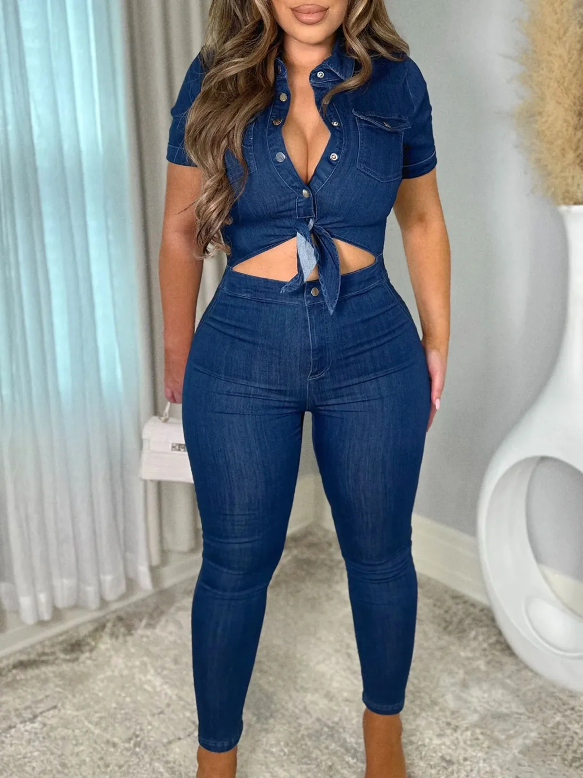 Przyciągnij spojrzenia dzięki Damskiemu Obcisłemu Kombinezonowi Jeansowemu – Jednoczęściowy Romper, który łączy w sobie uliczny styl i kobiecą elegancję. Wykonany z wysokiej jakości elastycznego denimu, podkreśla sylwetkę, zapewniając jednocześnie komfort i swobodę ruchów na co dzień.